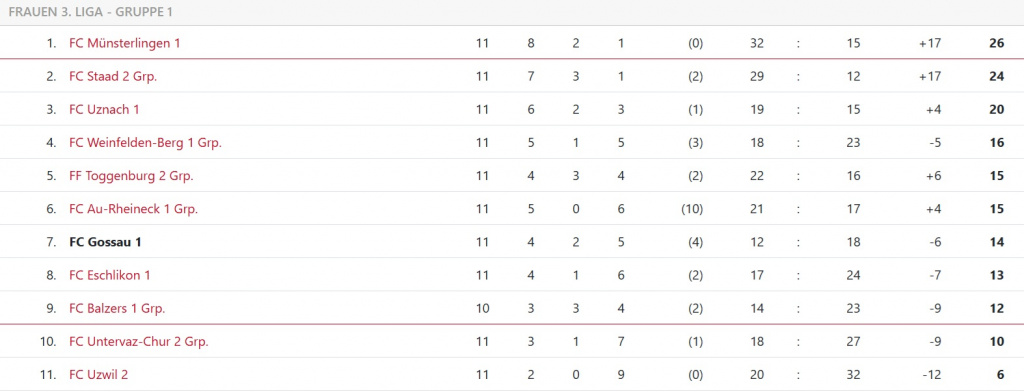Tabelle Frauen 3. Liga – Gruppe 1